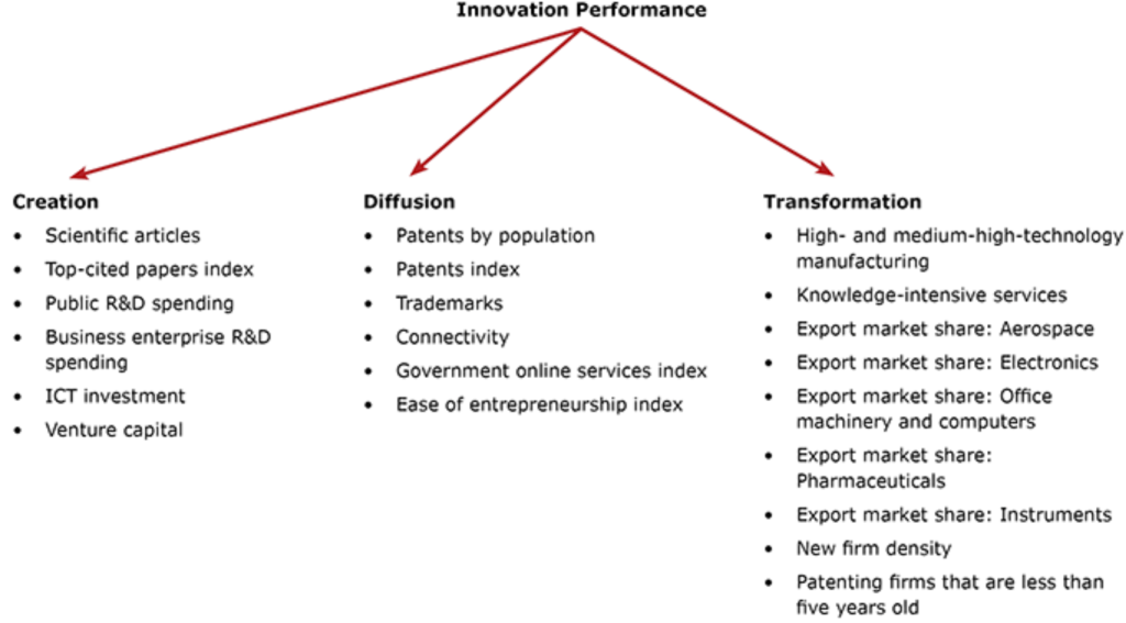 Second, the list of indicators in the Innovation report card also changed. Two indicators—technology exchange and share of world patents—were dropped from our analysis because they were judged to be of little use to either assessing or analyzing innovation performance. Eleven new indicators were added this year: