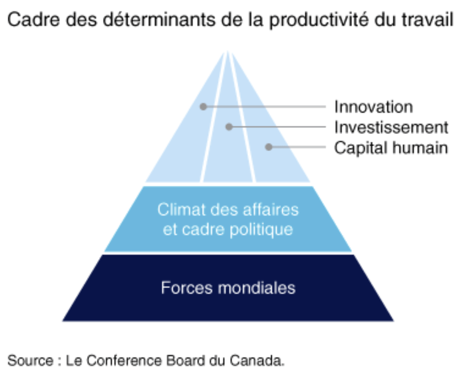 La productivité est le déterminant le plus important de la prospérité d’un pays à plus long terme. Les pays et provinces qui innovent et qui sont capables de s’adapter aux fluctuations de la nouvelle économie mondiale affichent une meilleure productivité et, par conséquent, un niveau de vie supérieur. La productivité est une mesure de l’efficacité de la production des biens et services.