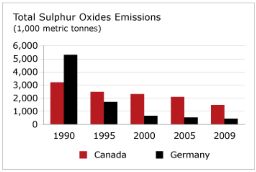 The result? Germany decreased its total annual SO2 emissions by nearly 5 million tonnes within 20 years. In 2009, its emissions were 1 million tonnes lower than those in Canada.