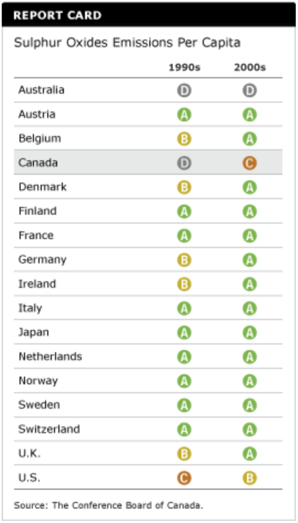 Has Canada’s report card on sulphur oxides emissions improved?