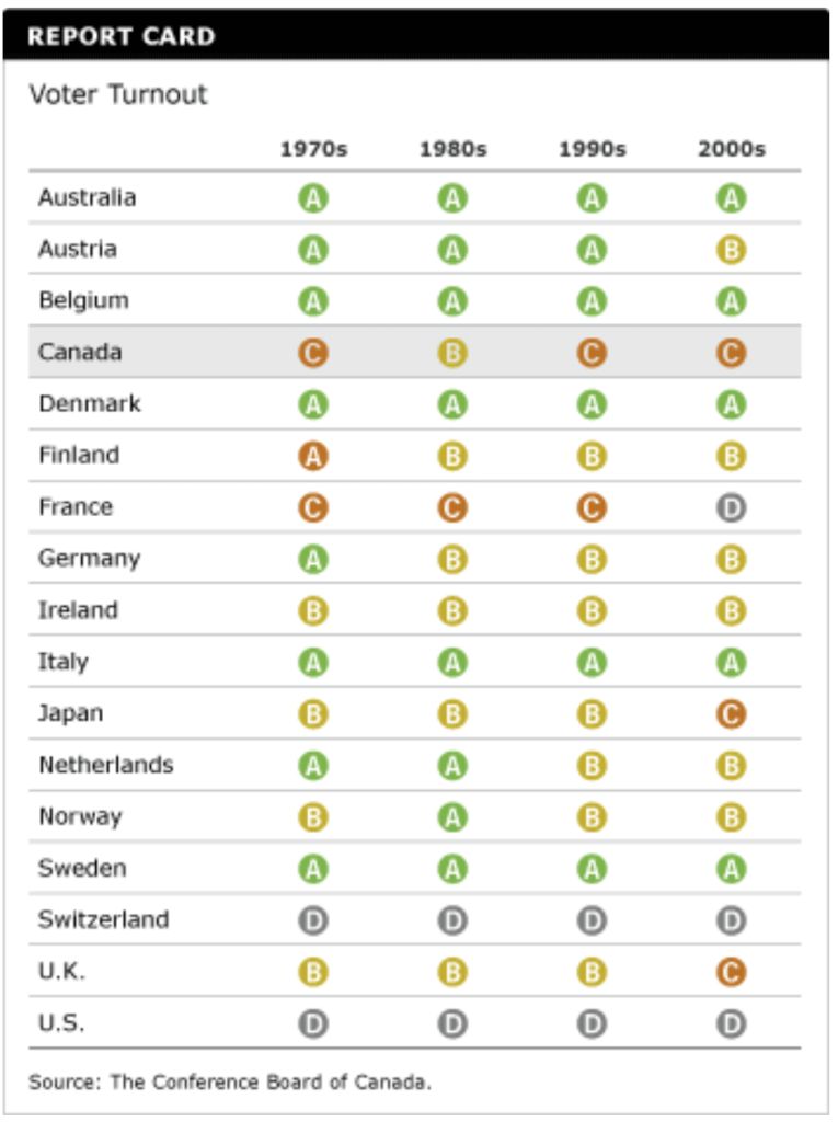 - The decline in voter turnout in Canada may be due to lower participation of young people.