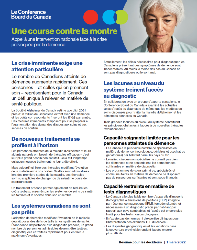 Il est encore temps : ouvrir la voie à une prise-en-charge de la démence au Canada fondée sur la valeur
