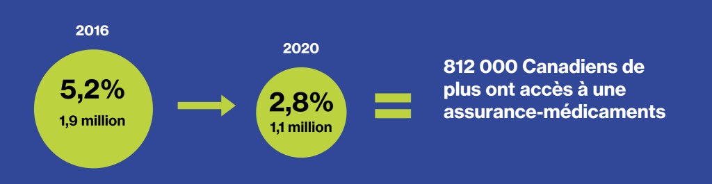 L’écart non assuré est presque la moitié de ce qu’il était il y a six ans. Depuis, 812 000 Canadiens sont devenus admissibles à la couverture des médicaments sur ordonnance.
