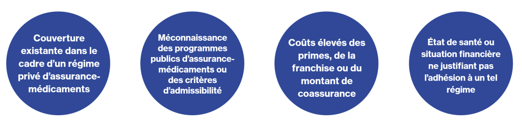 Voici quelques facteurs pouvant expliquer pourquoi un certain nombre de Canadiens n’adhèrent pas à un régime public d’assurance-médicaments :