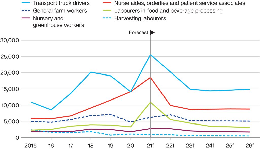 Since the number of jobs shrunk in the Canadian economy during 2020—and labour demand subsequently rebounded in the short term—essential job vacancies in 2021–22 are expected to be higher than the pre-pandemic period.