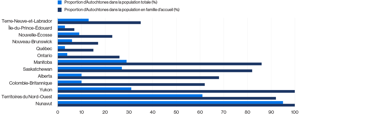 Il s’agit d’un problème de taille. Mais il présente également une occasion de soutenir les jeunes autochtones, qui demeurent surreprésentés dans le système de protection de l’enfance (voir le graphique 1).