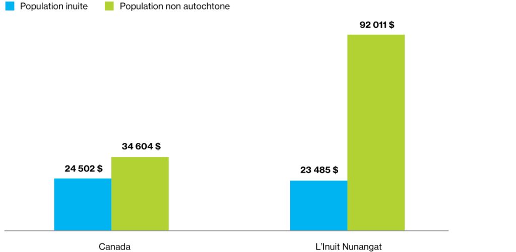 Dans l’ensemble du Canada, l’écart médian de revenu entre la population inuite et non autochtone âgée de 15 ans et plus est d’environ 10 000 $.