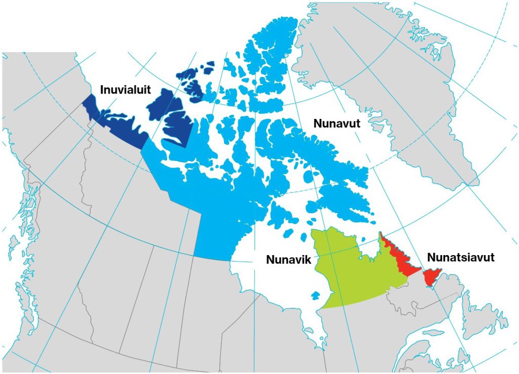 L’Inuit Nunangat comprend quatre régions inuites de revendication territoriale :