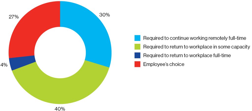 Q: As restrictions ease but the pandemic remains active, what is your organization’s approach to bringing employees currently working remotely back to the workplace?