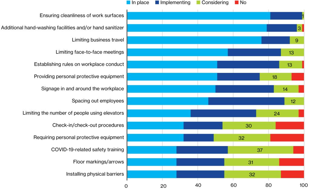 Q: Is your organization implementing any of the following measures to ensure employees’ safety while at the workplace?