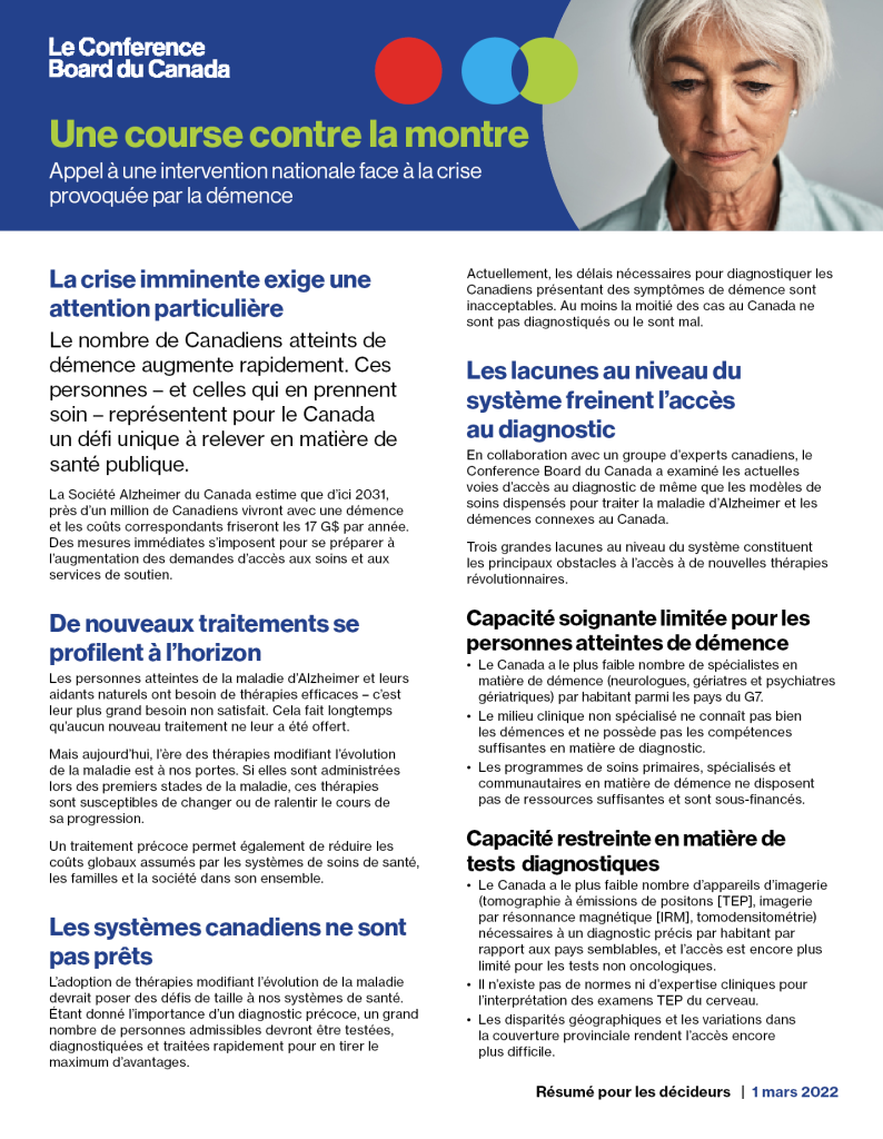 Il est encore temps : ouvrir la voie à une prise-en-charge de la démence au Canada fondée sur la valeur