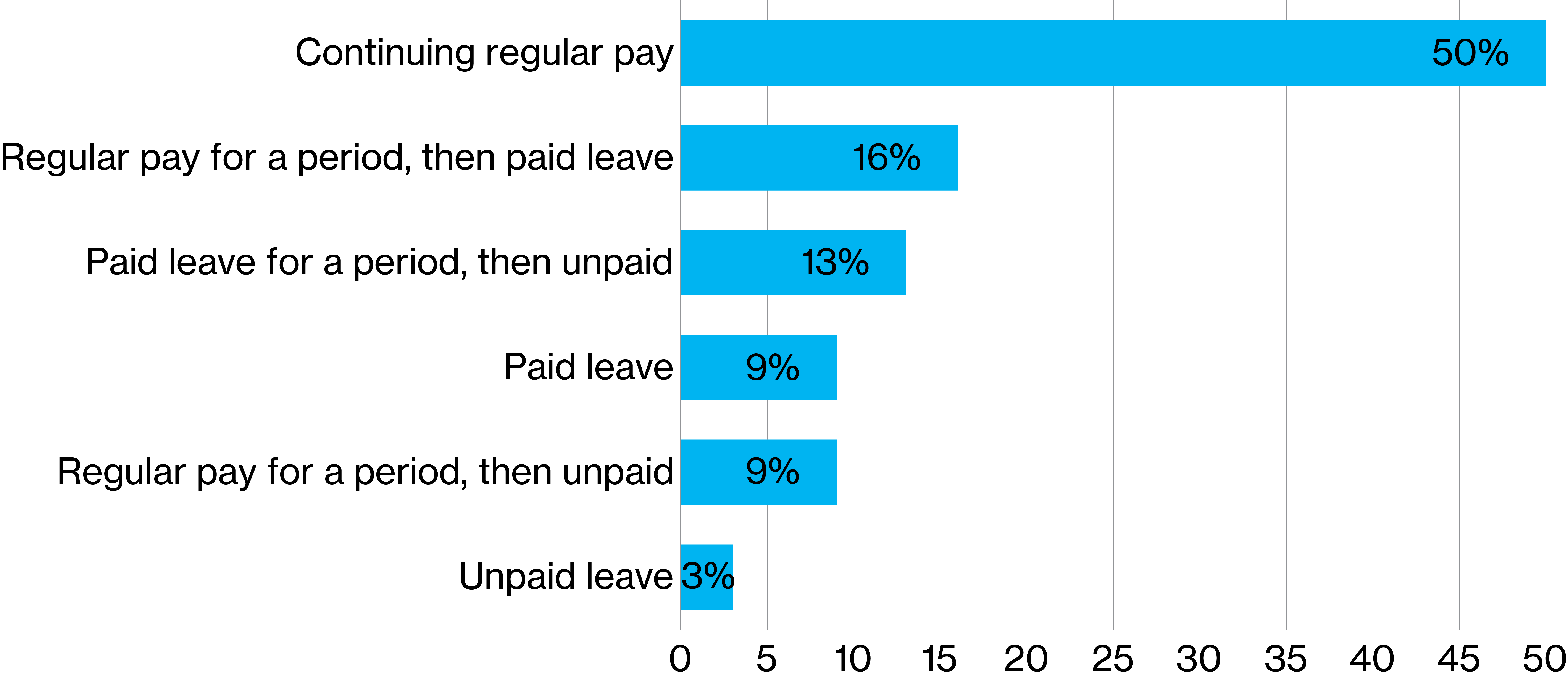 Q: For employees who remain employed but can’t work at all due to family responsibilities, what kind of compensation is your organization providing?