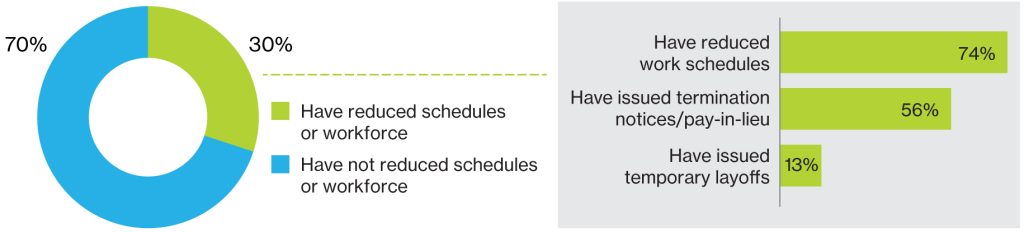 Q: Has your organization reduced work schedules or issued temporary layoff or termination notices to any employees?
